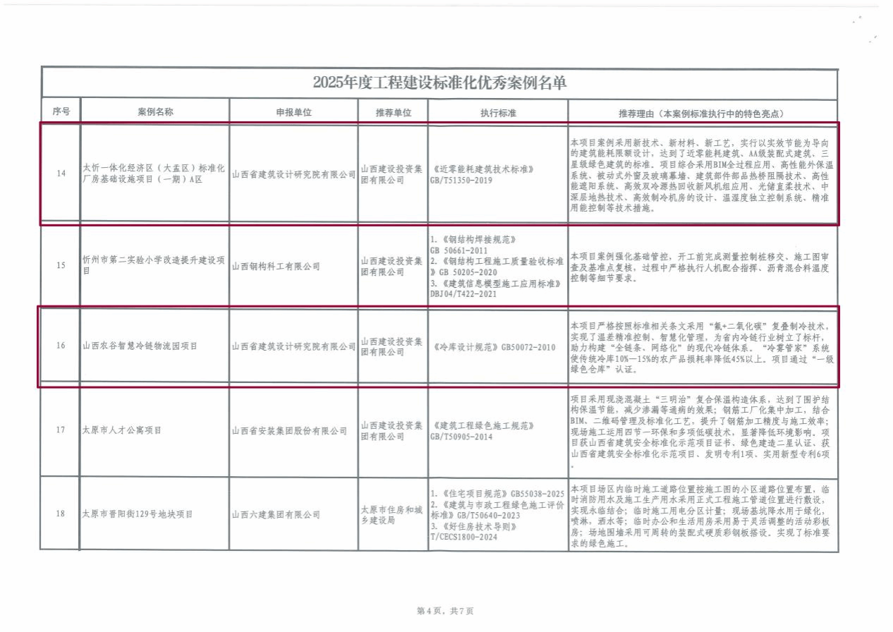 喜报——祝贺我院多项工程入选山西省《2025年度工程建设标准化优秀案例名单》