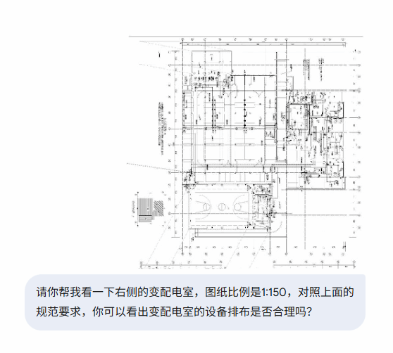 对于一些改造工程,原有图纸可能模糊不清,无法调取cad图纸,无法使用图形软件测量,可以使用多模ai(Multimodal LLMs)的图像识别功能。