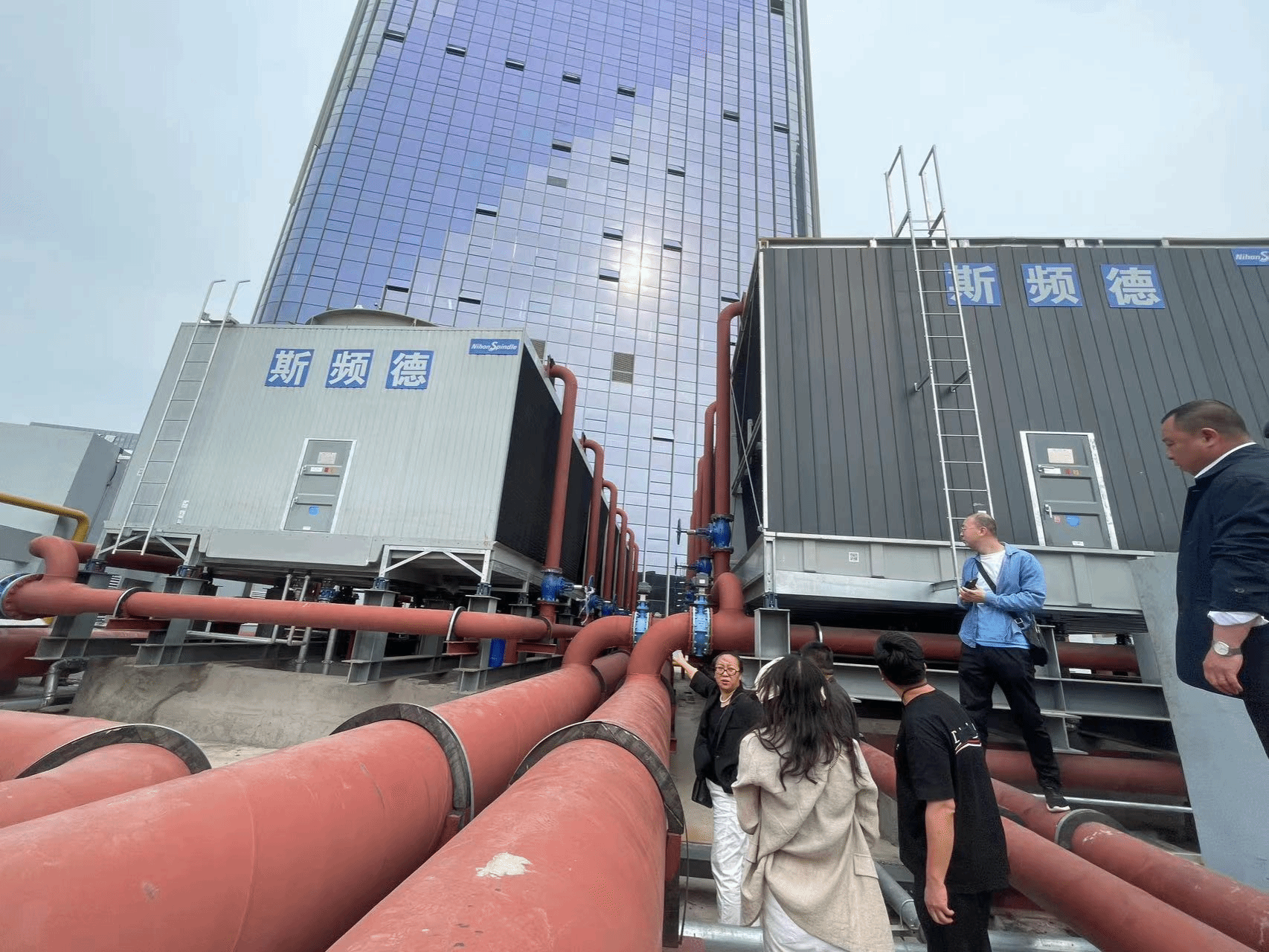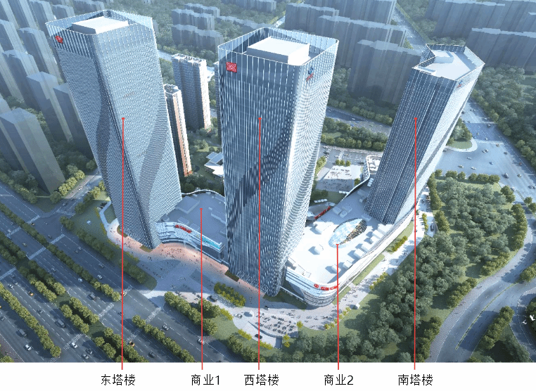 前期设计阶段,受限于裙楼屋面空间,冷却塔的位置与西塔楼较近。施工图设计阶段中采用减振和相应的消声措施来降低冷却塔的震动,减少了噪音的产生;经过实地体验,噪声控制在可接受范围,有效减少了对周边环境的影响,体现了设计的前瞻性与实用性。