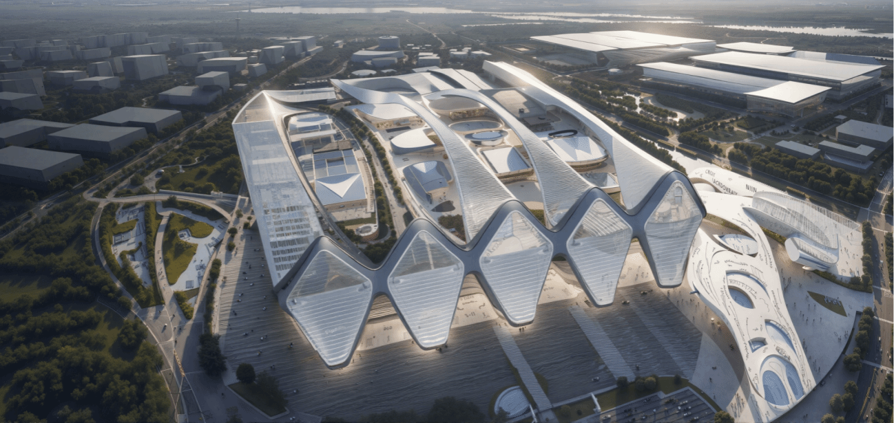 建筑意向以“历史的浪潮与时间的窗口”为主题,将深刻的文化内涵融入考古遗址保护建筑的设计之中。连绵起伏的波浪状屋顶象征着历史长河的绵延不绝,每一道曲线都诉说着文明在时光中的沉淀与传承。四面立面上的巨型菱形开窗犹如通往古代的时光窗口,让现代访客透过这些几何形态与遥远文明展开跨越时空的对话。